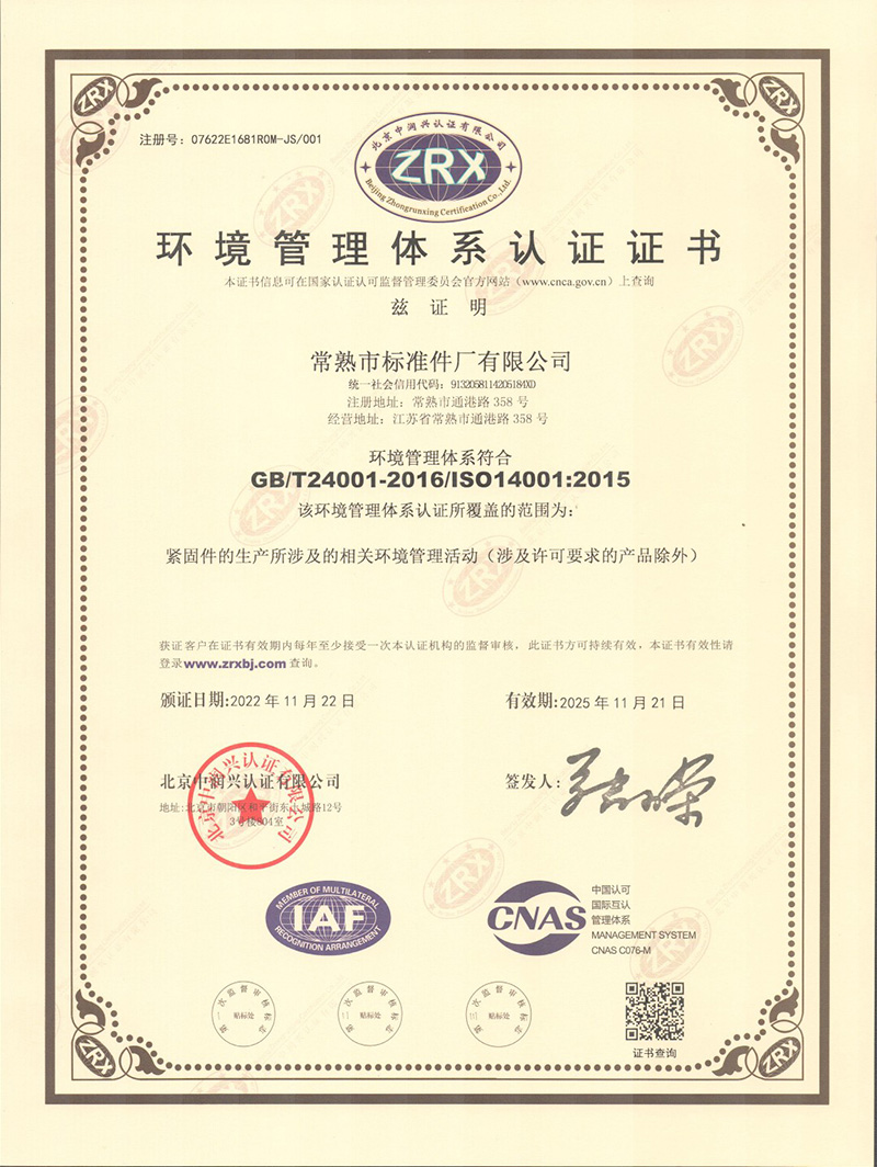 ISO14001環(huán)境質(zhì)量體系認(rèn)證證書