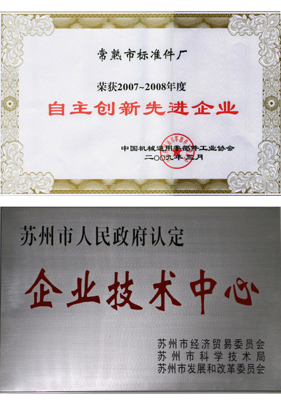 技術中心證書/自主創新證書