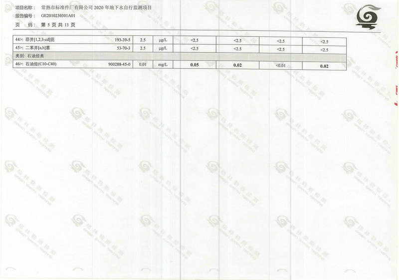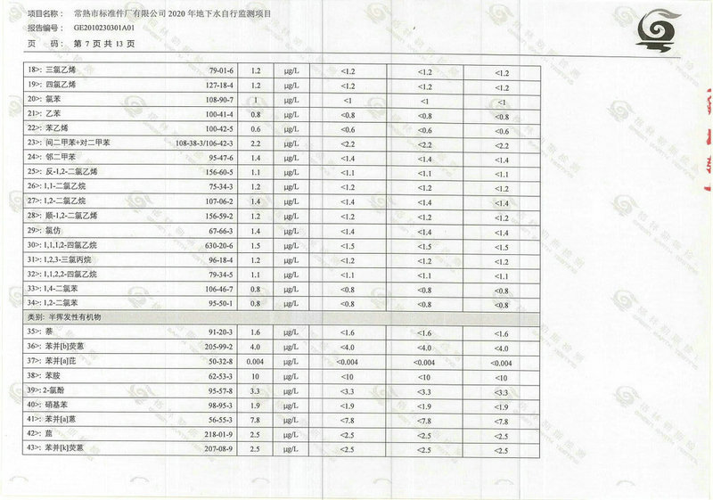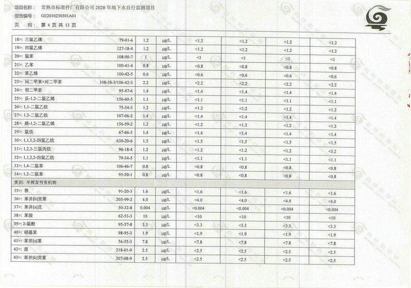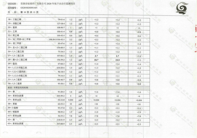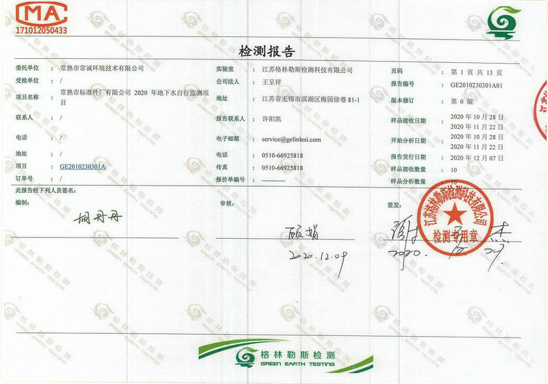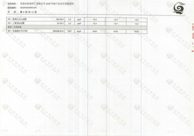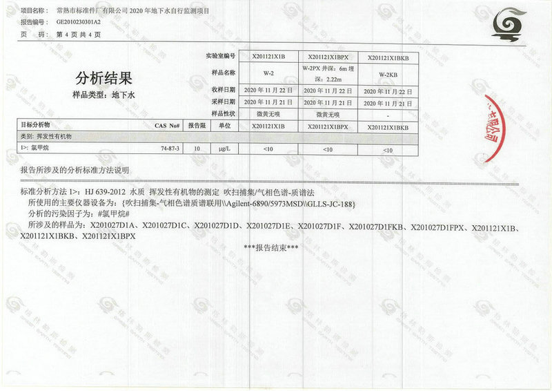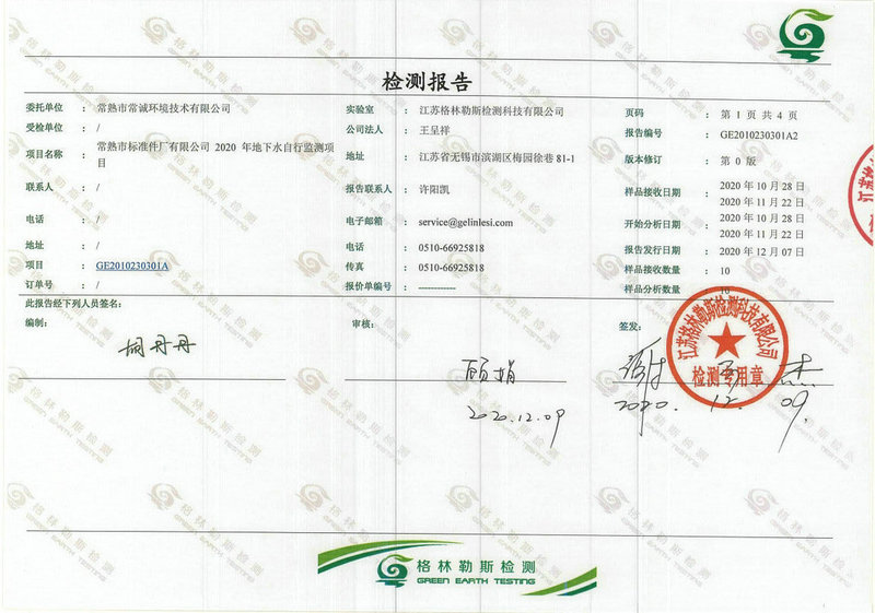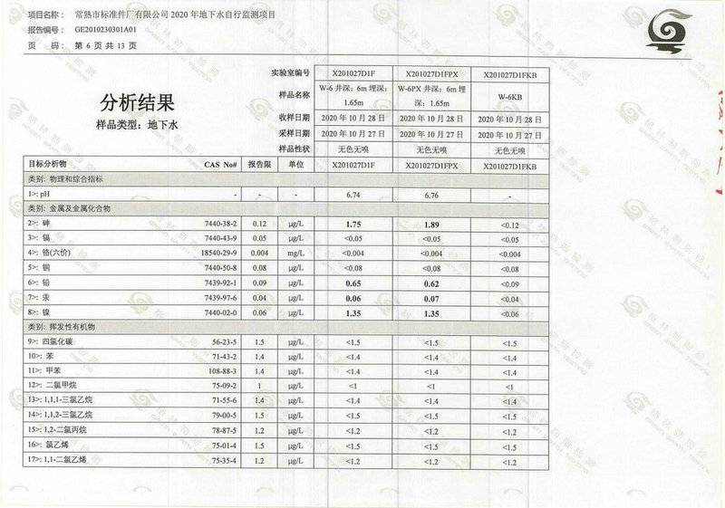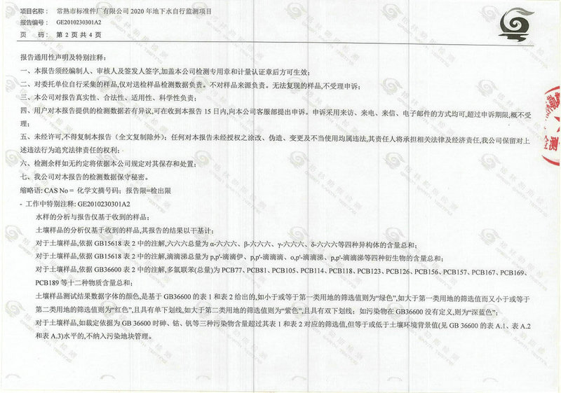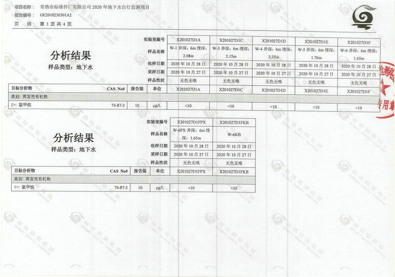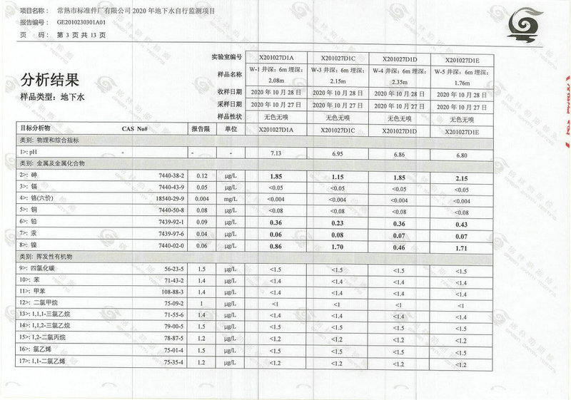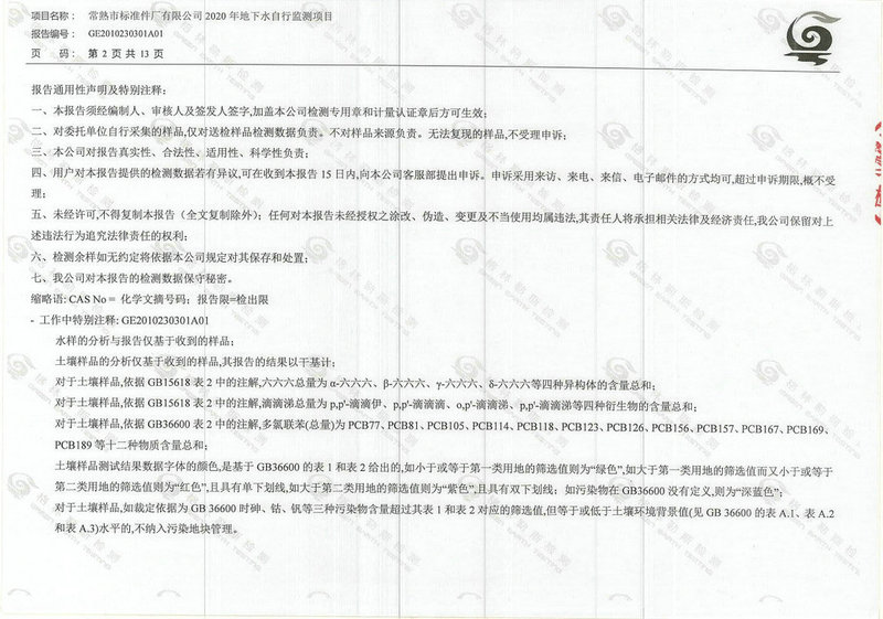 常熟市標(biāo)準(zhǔn)件廠有限公司2020年地下水自行監(jiān)測(cè)報(bào)告