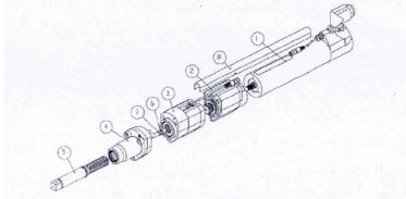 1--動力源,2--減速箱,3-傳感-器,4--前端部分,5--加載頭,6、7--壓縮彈簧,8--線纜槽。