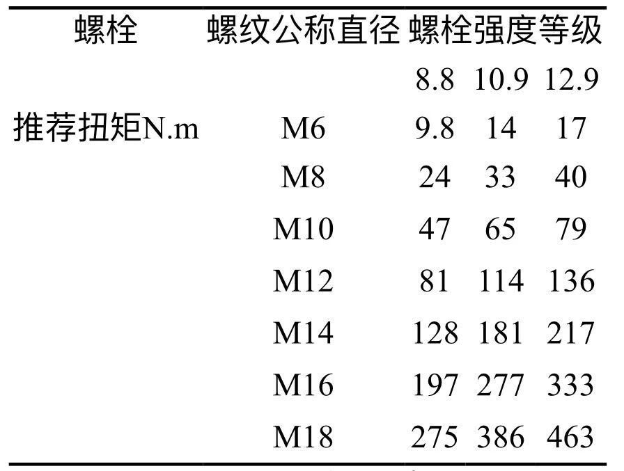 以下是某從事緊固工具公司提供的部分不同公稱直徑和強度等級F的推薦擰緊扭矩的技術資料:
