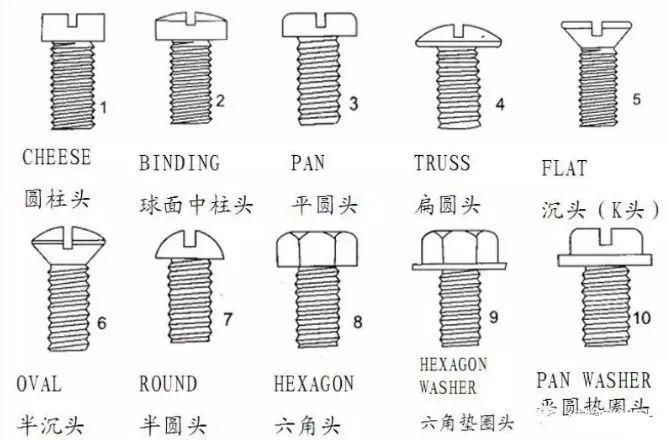 要了解螺絲螺栓,先要知道他們的類型、特征及功能: