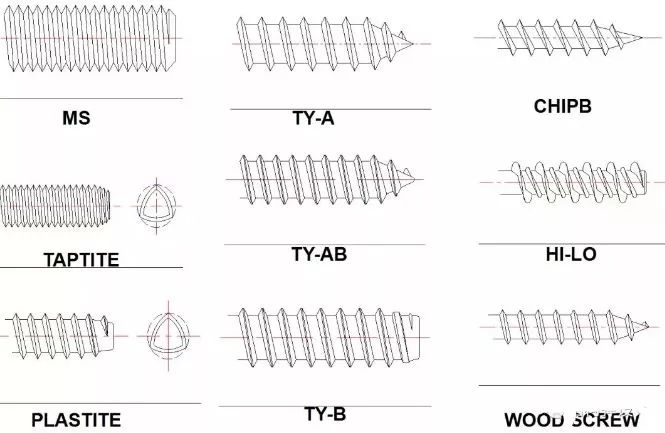 自鉆螺紋:直接在裝配物上使用,螺絲鉆孔攻牙一次成型。