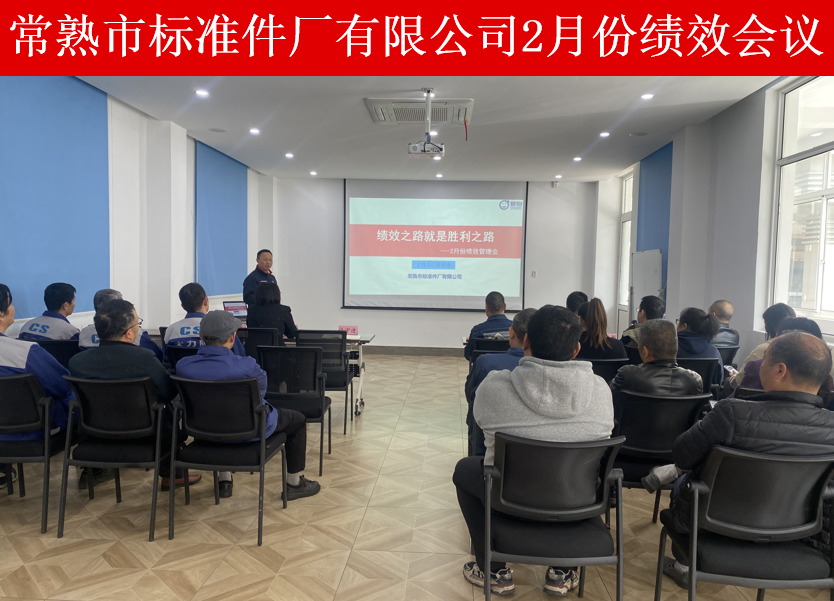 3月31日下午,常熟市標準件廠有限公司召開2月份績效管理會。本次會議由公司副董事長許守進主持,董事長蔣永峰、常務副總經理顧錦華、副總經理聶文娜等25名中高層管理出席本次會議。