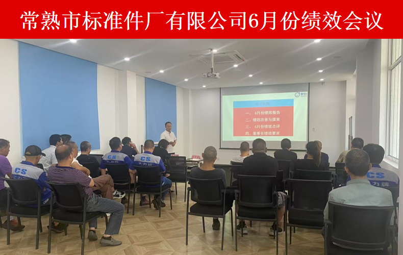 7月21日下午,常熟市標準件廠有限公司召開6月份績效管理會。本次會議由公司副董事長許守進主持,董事長蔣永峰、常務副總經理顧錦華、副總經理聶文娜、邵潑等23名中高層管理出席本次會議。
