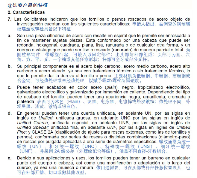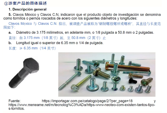 一、案件核心信息:精準界定涉案范圍,把握調查關鍵周期 1. 涉案產品明確:尺寸規格是核心判定依據 根據墨西哥經濟部公告,本次涉案鋼制螺栓具體范圍為直徑 3.175 mm(1/8 英寸)至 50.8 mm(2 英寸)、長度 6.35 mm(1/4 英寸)及以上且帶有螺紋的產品。值得注意的是,盡管公告提及上述海關編碼,但行業企業需明確 —— 判斷產品是否涉案,最終應以調查機關發布的《立案公告》原文描述為準,海關編碼及中文翻譯僅作參考,不能作為唯一判定標準。 對于申請方提出的涉案產品詳細特征、非涉案產品類型等信息,中國機電產品進出口商會已整理《立案公告》供企業查閱(含相關圖示參考),企業可通過商協會渠道獲取原文,精準核對自身產品是否在調查范圍內。