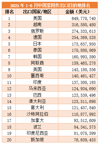 從出口目的地來看,美國、越南、俄羅斯、德國和日本成為前五大出口市場。其中,對美國出口金額達649,770,740美元,對越南出口316,580,480美元,對俄羅斯出口274,333,613美元,對德國出口254,369,528美元,對日本出口175,657,950美元。美國作為中國緊固件最大的海外市場,依舊保持著較高的需求水平,而越南、俄羅斯等新興市場的快速增長也為中國緊固件企業帶來了新的機遇。
